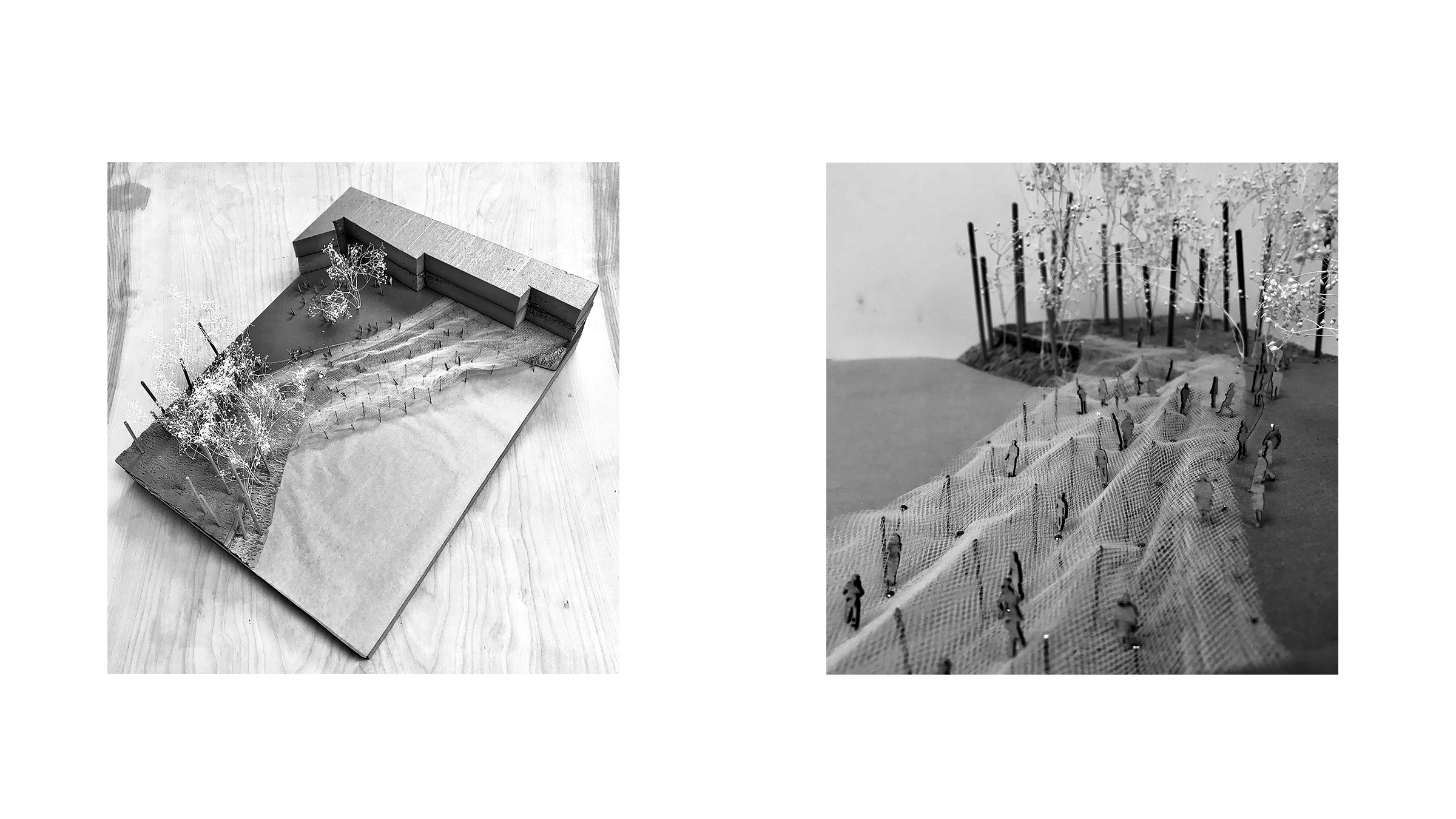 These tensile landscapes become spaces of rest, movement, play, and reflection—architectural instruments that reveal the shifting dialogue between land and water, body and environment, solidity and fluidity.