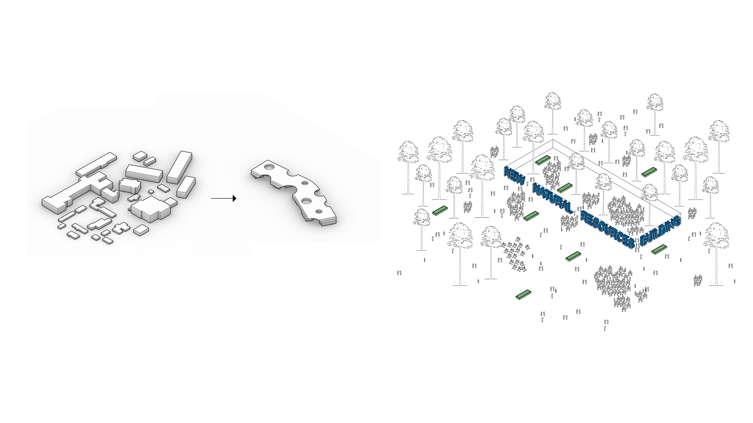 The natural resource programs within the University of Florida have established leaders in the ecology, economics, and human dimensions aspects of our environment. The New Natural Resources Building, led by the University’s School of Forest, Fisheries, & Geomatics Sciences (FFGS) and IFAS Leadership, promotes the opportunities that mass timber construction offers to support these three aspects by planning a new campus structure that will accommodate seven different natural resource programs. This project unifies decades of innovation in natural resource and forest management, teaching, and outreach through a collaborative team positioned at the intersection of practice and academics. It will expand natural resource and forestry education by realizing a mass timber building rooted in healthy building practices. Augmenting IFAS’s nationally leading practices of putting into action the theories and principles of forestry subjects through the Austin Cary Forest Campus, the New Natural Resources Building proposal catalyzes the mission of the University of Florida’s natural resource programs through the physical implementation of forest management into a southern yellow pine mass timber structure.
